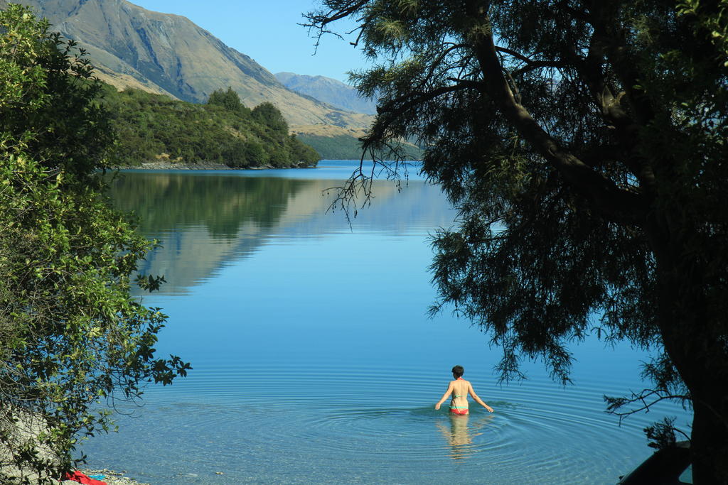Trotz wirklich heißem heißem Wetter entschieden wir uns den Mt. Judah Track in Angriff zu nehmen. Als angenehme Abwechslung läuft man hier nicht erst mal lange durch Wälder, sondern hat allzeit wunderschönen Blick auf die Täler und Berge um den Wakatipu. Aufgrund der Hitze gingen wir nicht bis ganz zum Ende sondern ließen uns neben dem Weg auf dem Weg von der Sonne verwöhnen.