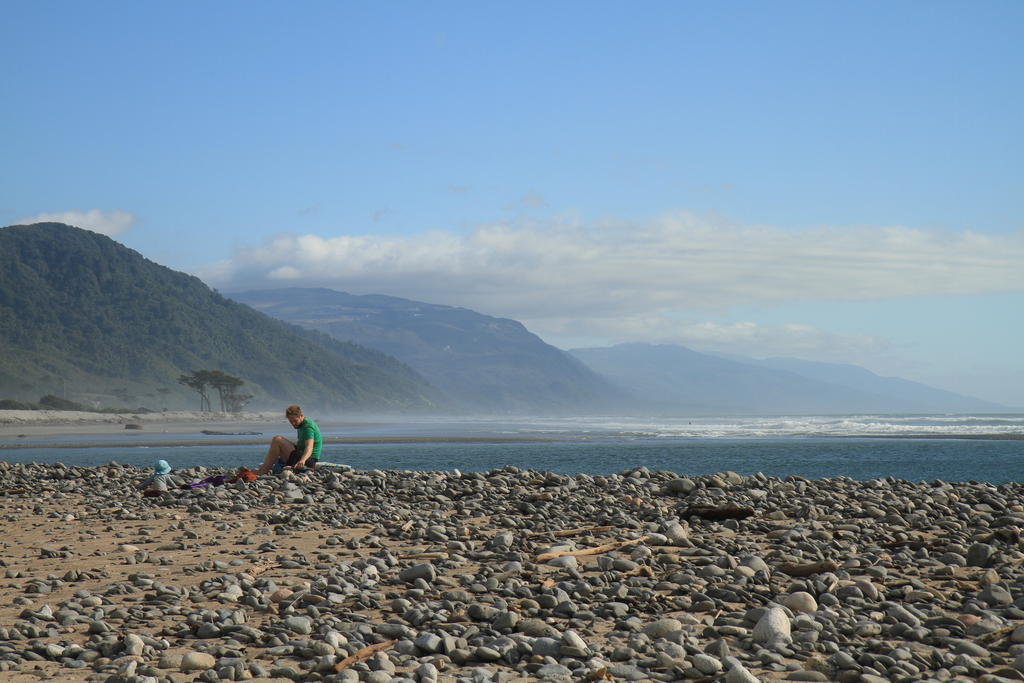 Nördlich von Westport fahren nicht viele Touristen auf der Küstenstraße, doch wir hatten einen guten Tipp bekommen. Der „Umweg“ zu Gentle Annies, einem süßen, sympathischen und gepflegten Campground lohnte sich. Wir ließen die Seele baumeln, wuschen Wäsche und tranken Tee. Fabian Versuchte sich erneut im Surfen mit dem Bodyboard, aber entweder war das Wasser zu tief oder der Untergrund bestand aus scharfkantigen Steinen. Zudem war die Strömung wirklich furchteinflößend, daher beschränkten wir uns, und Fabian mit blutigem Großzeh, darauf die Aussicht zu genießen.
