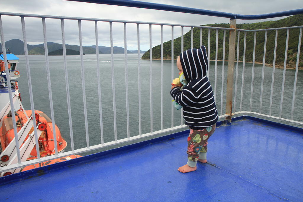 Nach einigen Mußestunden mit baumelnder Seele -einfach herrlich an diesem wunderschönen einsamen Strand- fuhren wir weiter zu unserem Stammplatz vor Kapiti Island. Natur und Landschaft hatten uns letztes Mal schon fasziniert und das Panorama vor dem Naturschutzgebiet hatte nichts von seiner Magie verloren. Vielleicht ein bisschen zufällig, aber Jaron machte hier seine ersten beiden Schritte ohne Hand und ganz alleine. Total aufregend.