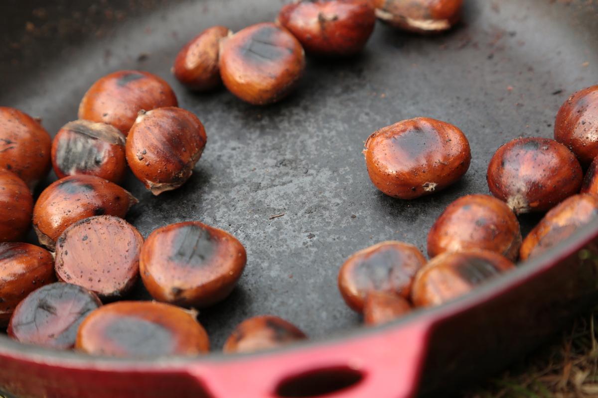 Selbst gesammelte und in der Gusseisernen Pfanne geröstete Maronen. Ansonsten fanden wir hinter dem Sucher unserer Kamera wenig Lohnendes am Endes unseres kleinen Urlaubs
